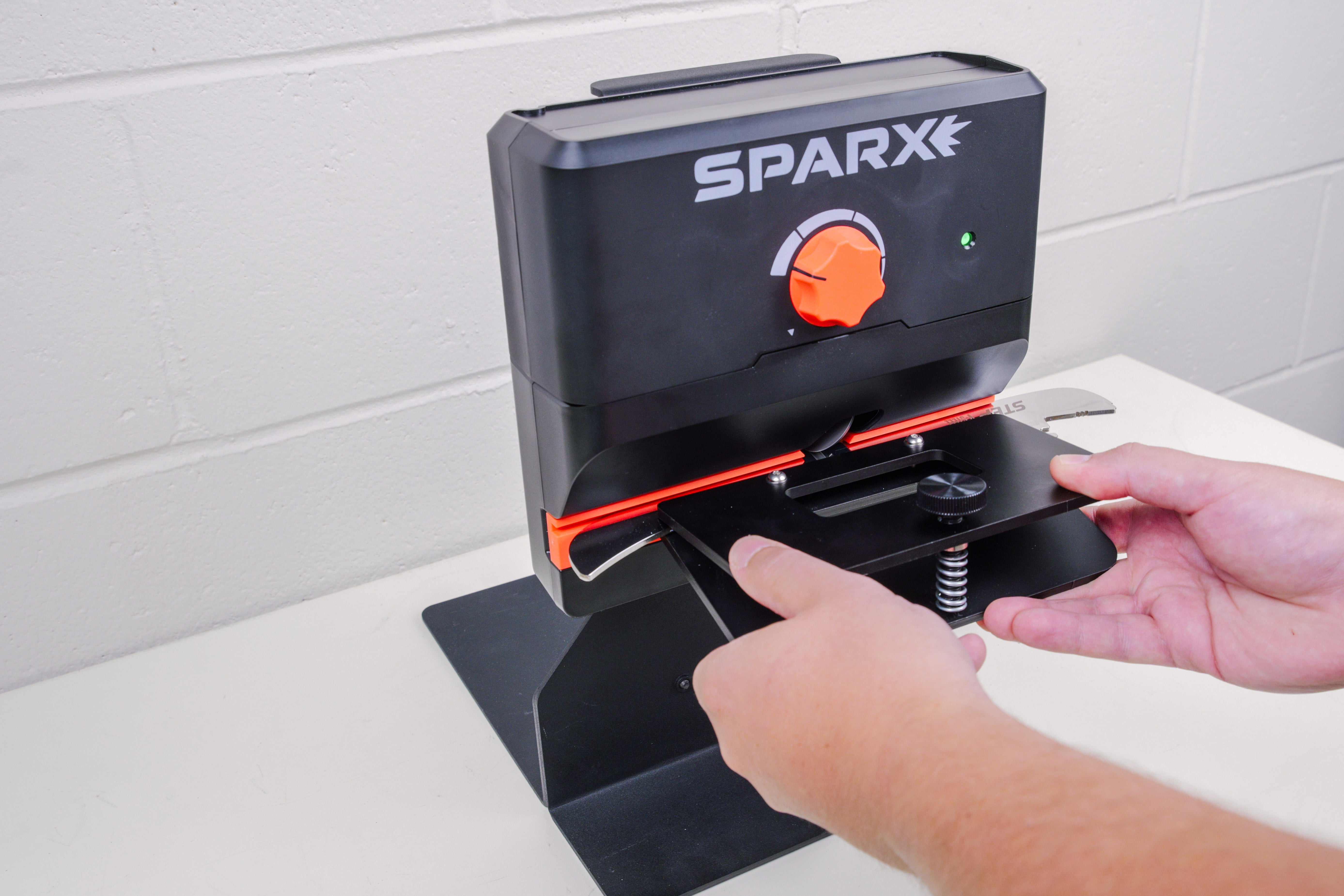 The Sparx Universal Blade Holder is the must-have accessory for  maximum flexibility when sharpening. Designed to securely hold loose or replacement steel, this ergonomic holder is spring loaded and keeps your blades perfectly aligned for a smooth, consistent sharpening experience every time.