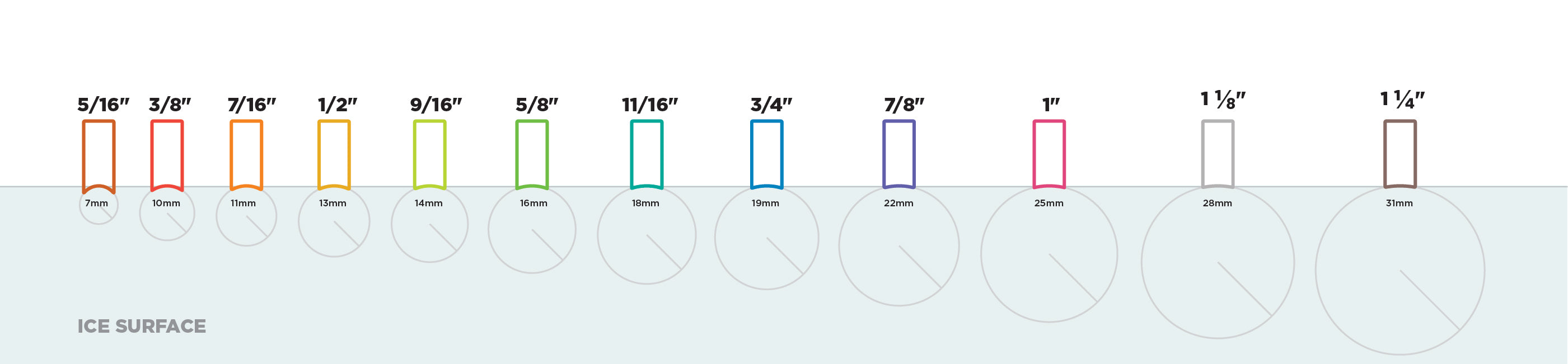 Choosing the right hollow is a matter of personal preference, whether you want more bite or more glide. The most common Radius of Hollow is a 1/2”, which is what you will find in most retail settings. We recommend 1/2” for most youth players (less body weight) and then increasing the radius (9/16”, 5/8”) as the player gets larger.